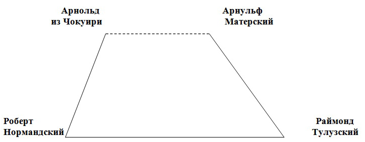 Первый Крестовый поход был предпринят, когда к нему была подключена аристократия, позднее типичные феодалы и близкие к ним структуры, характерные для средневековой Европы. Хотя крестоносцы взяли много идей, характерных для их общества, однако географическое расположение и удобный случай разложил их Родину, создав благоприятную возможность и действительную необходимость адаптации их традиционных методов к облегчению и скреплению межличностных связей. Это говорит о том, что Крестоносцы пришли не просто в большом количестве, они объединились в отряды – группы в большей или меньшей степени освобождённые от обязательств, которые церковь описывала как связь, то есть вассальная или ленная зависимость.