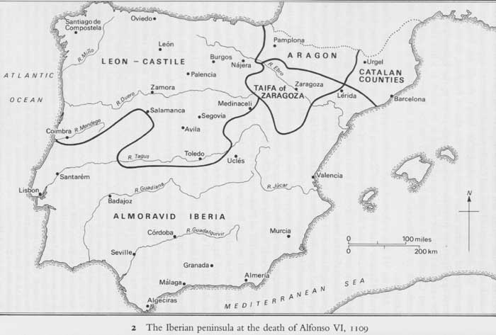 Иберийский полуостров в 1109 г. (41 кб). Источник: S. Barton. The aristokracy in twelfth - century Leon and Castile. 1997