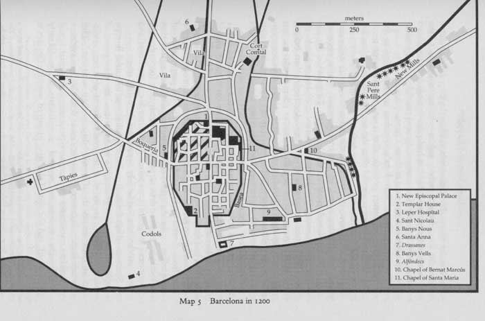Барселона в 1200 г. (42 кб). Источник: S. Bench. Barcelona and its rulers 1096 - 1291. 1994