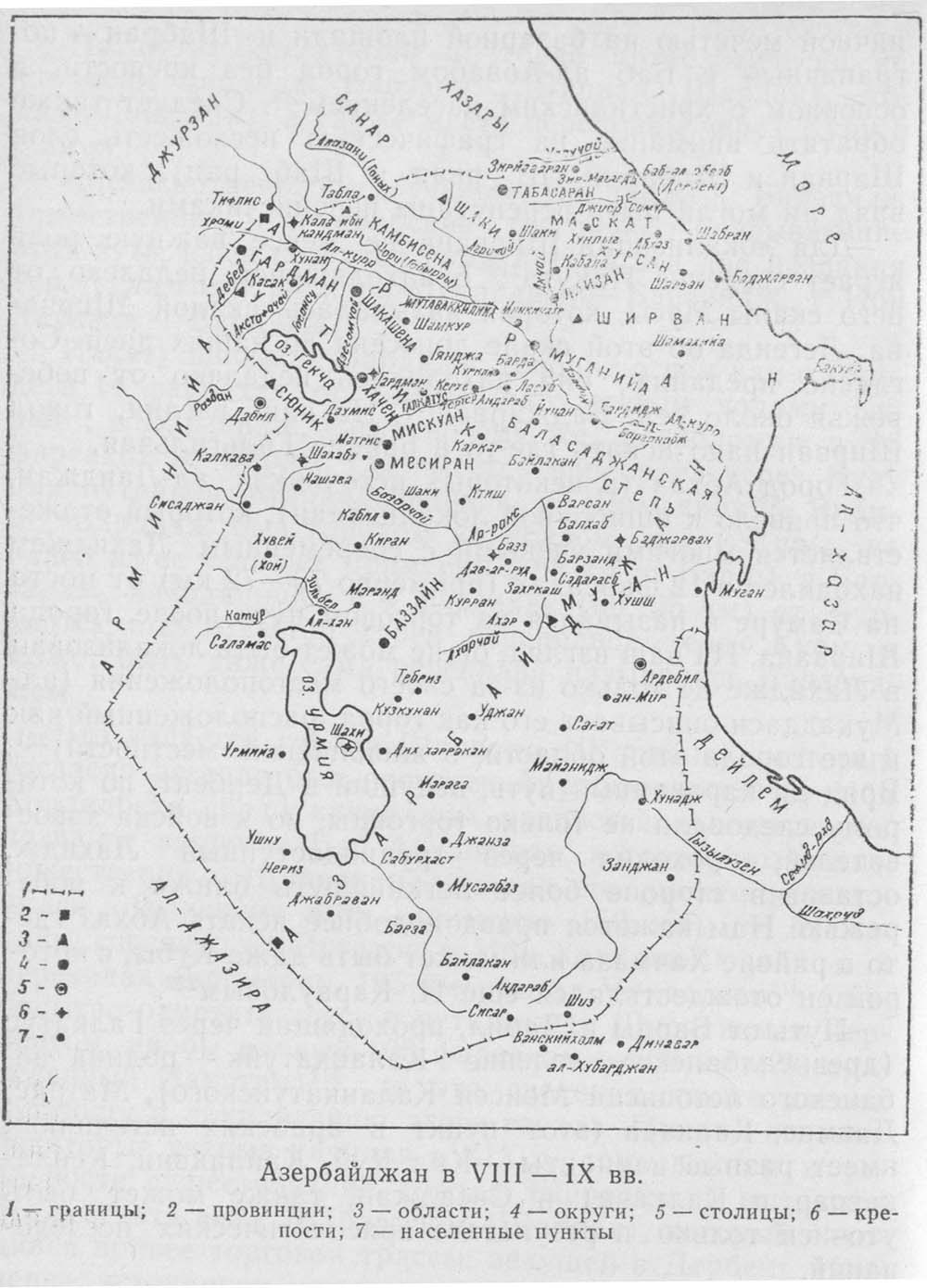 Азербайджан в VIII - IX вв. (132 кб). Источник: Историческая география Азербайджана Баку. 1987