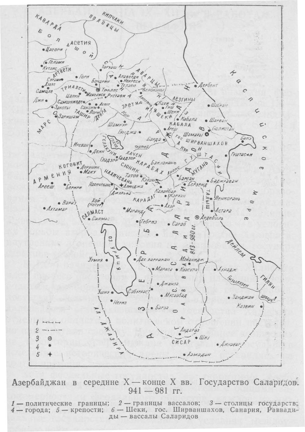 Азербайджан в середине X - конце X в. (128 кб). Источник: Историческая география Азербайджана Баку. 1987