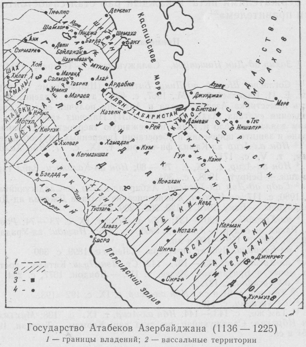 Государство атабеков Азербайджана (1136 - 1225). (184 кб). Источник: Историческая география Азербайджана Баку. 1987
