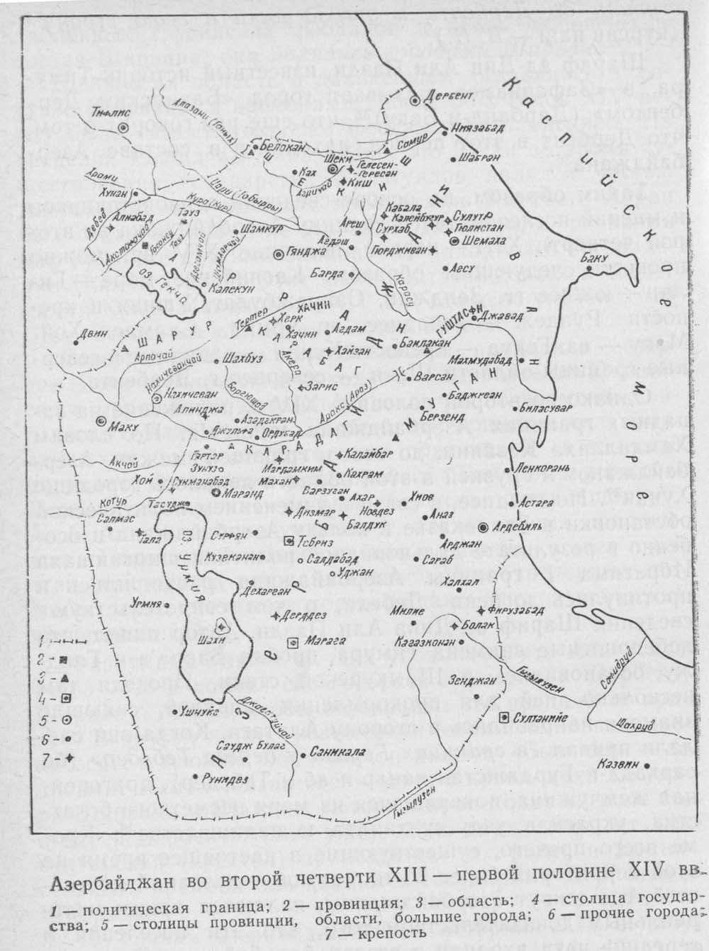 Азербайджан во второй четверти XIII - первой половине XIV вв. (181 кб). Источник: Историческая география Азербайджана Баку. 1987