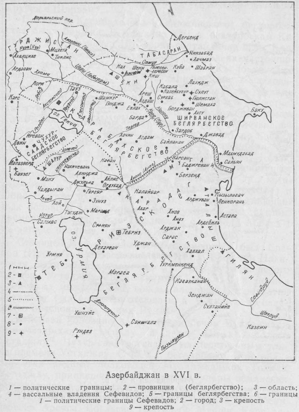 Азербайджан в XVI в. (140 кб). Источник: Историческая география Азербайджана Баку. 1987