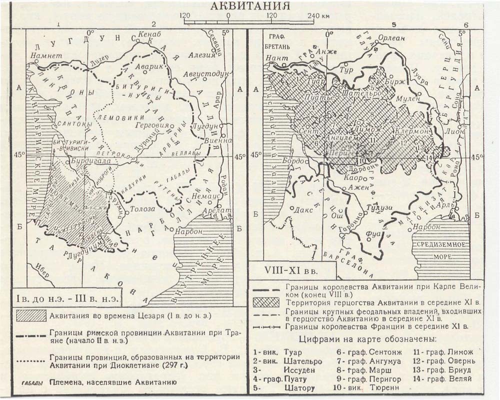 Аквитания до IX в. (182 кб). Источник: Советская историческая энциклопедия. М. 1976 (Любезно предоставлена Дьяконовым И. В.)