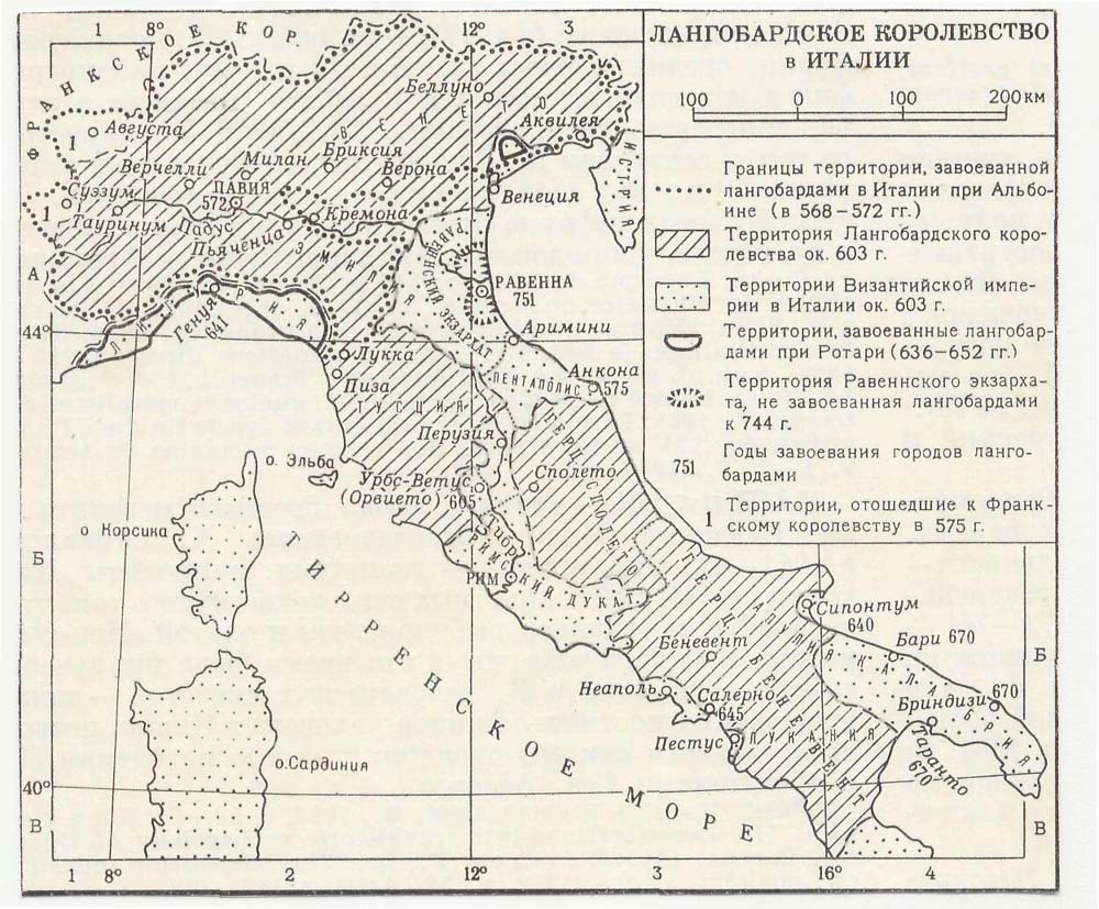 Лангобардское королевство в Италии. (186 кб). Источник: Советская историческая энциклопедия. М. 1976 (Любезно предоставлена Дьяконовым И. В.)