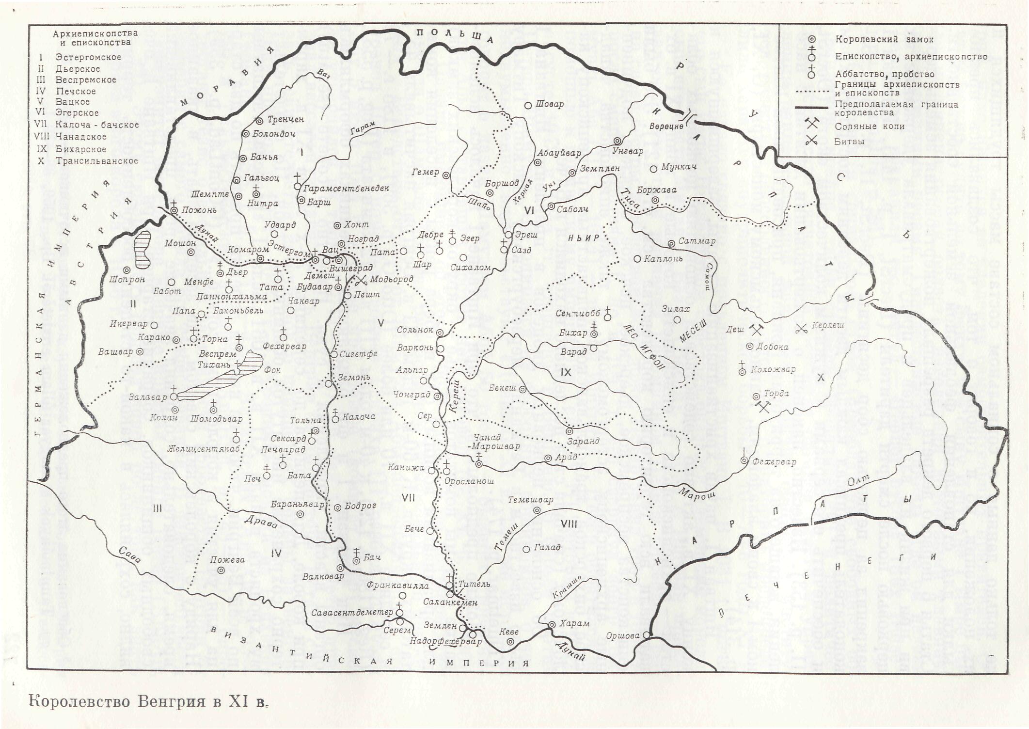 Королевство Венгрия в XI в. (380 кб). Источник: История Венгрии. М. 1971. (Любезно предоставлена Дьяконовым И. В.)