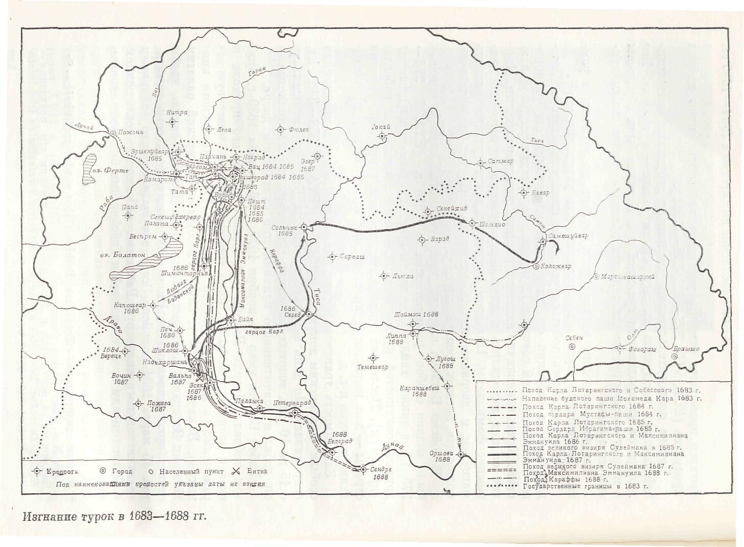 Изгнание турок в 1683-1688 гг. (202 кб). Источник: История Венгрии. М. 1971. (Любезно предоставлена Дьяконовым И. В.)