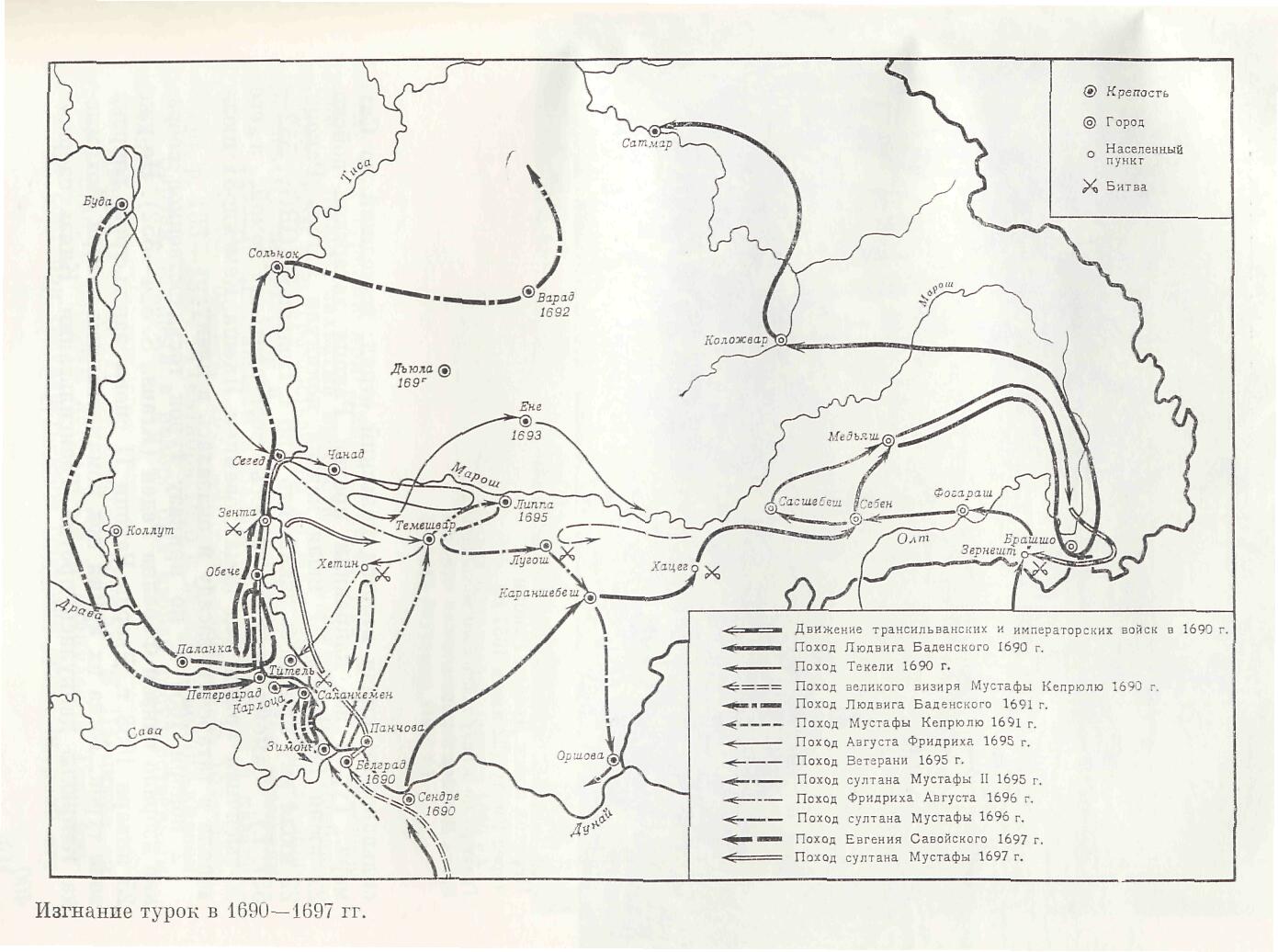 Изгнание турок в 1690-1697 гг. (177 кб). Источник: История Венгрии. М. 1971. (Любезно предоставлена Дьяконовым И. В.)