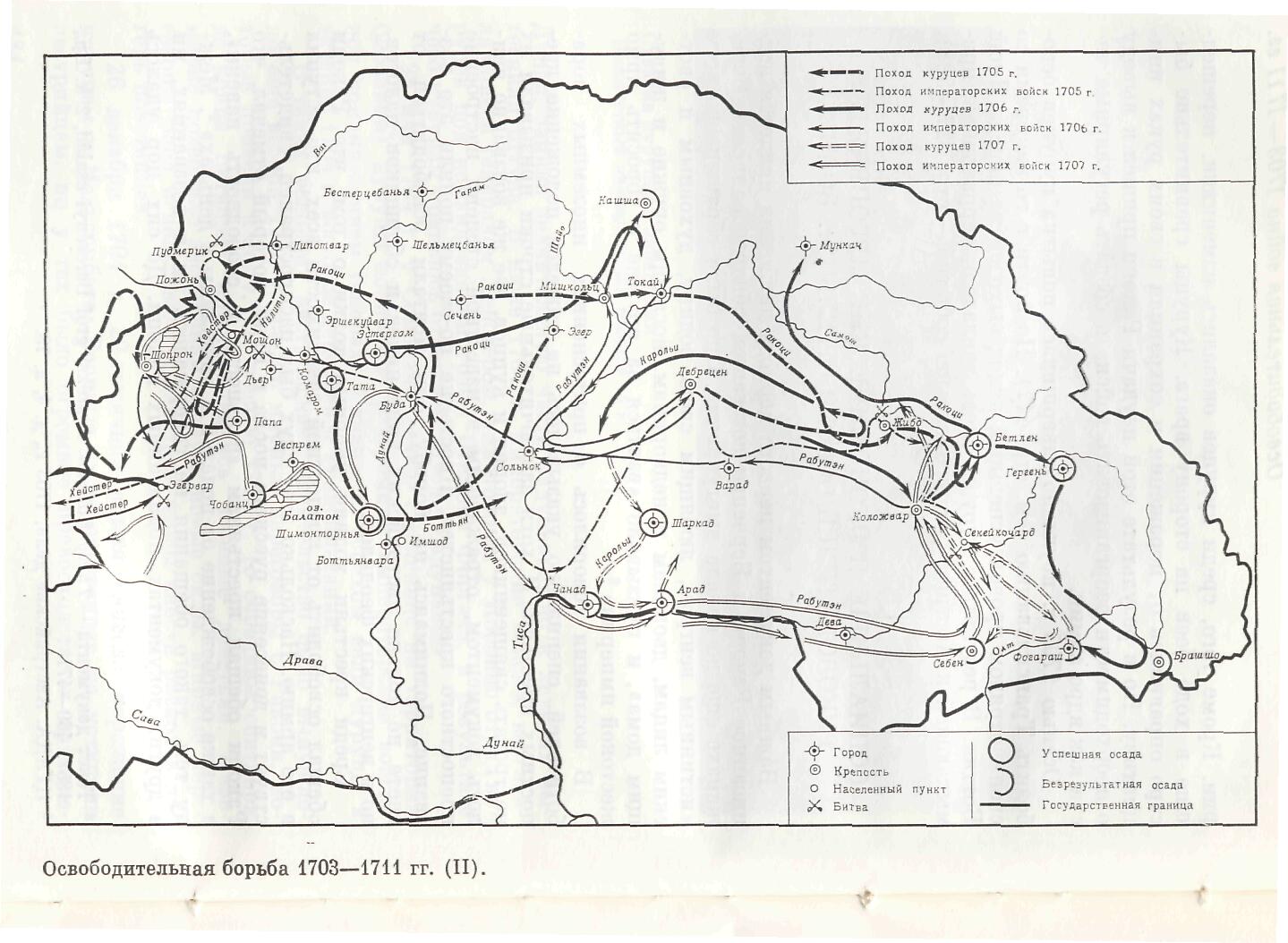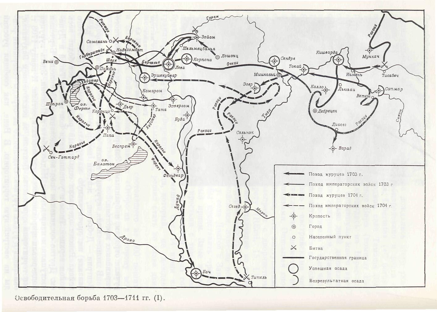 Движение куруцев 1703-1711 гг. (III) (208 кб). Источник: История Венгрии. М. 1971. (Любезно предоставлена Дьяконовым И. В.)