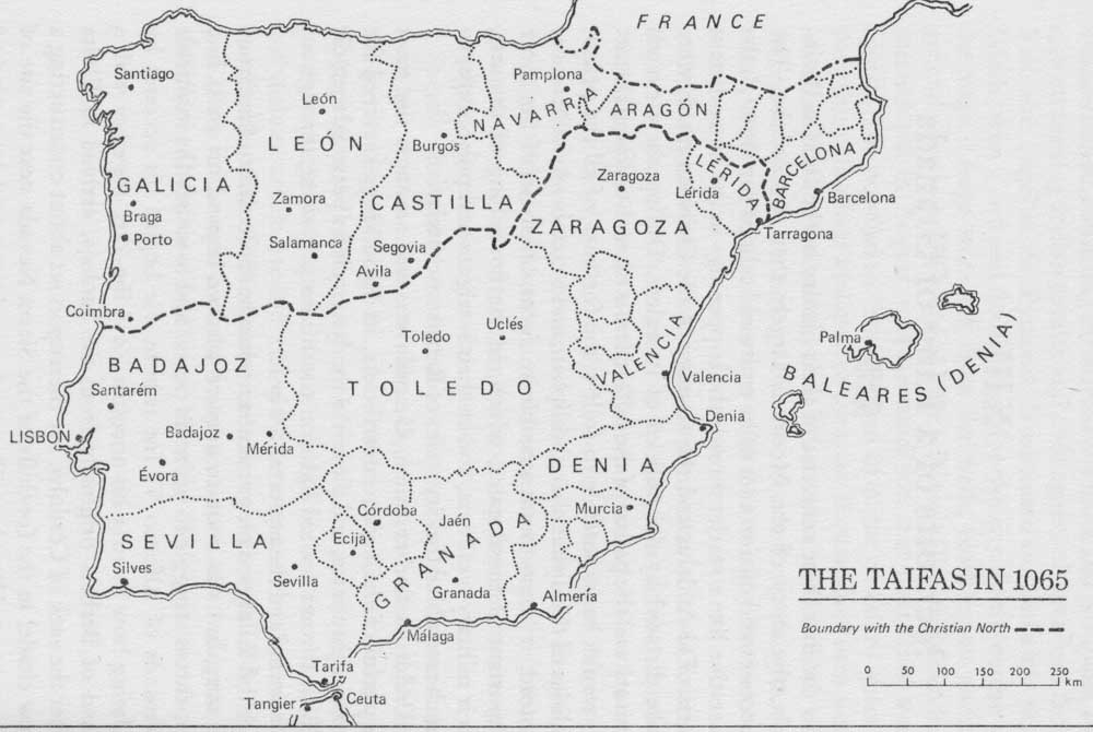 Государства тайф к 1065 г. (72 кб). Источник: Jan Read. The Moors in Spain and Portugal. 1974