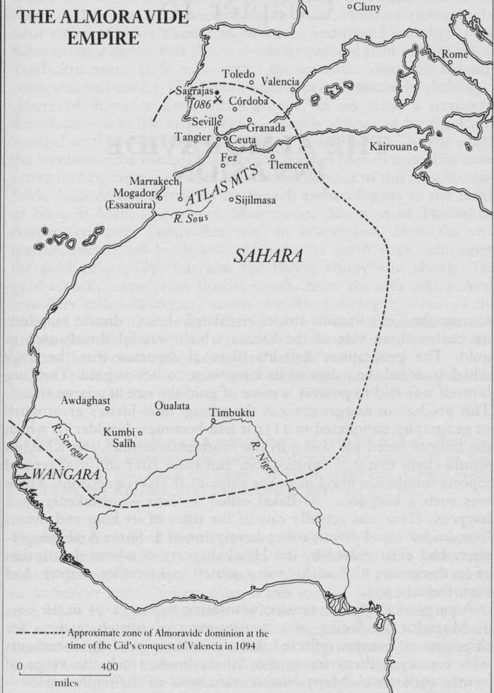 Империя Альморавидов к 1094 г. (65 кб). Источник: R. Fletcher. The Quest for El Cid. 1989